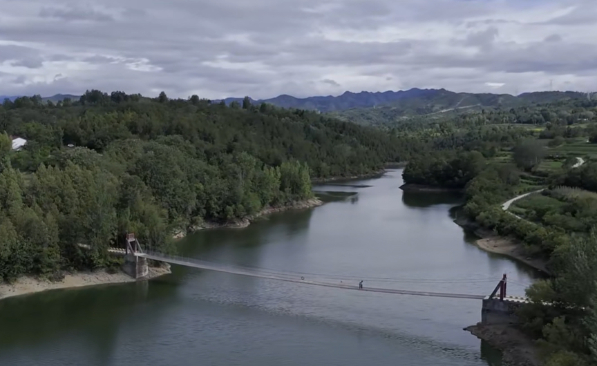 如今,方程村的生活早已離不開這座橋。村民結(jié)伴過橋種地,對岸荒了數(shù)年的坡地重新種上了黃豆和玉米。更讓人意外的是,這座“航天橋”還成了“網(wǎng)紅橋”,不少自媒體博主循著消息來錄視頻、做直播,無人機(jī)盤旋在水庫上空,記錄下“青山環(huán)抱鐵索橋,碧水倒映白云飄”的景致。