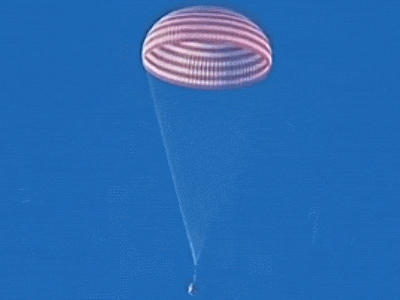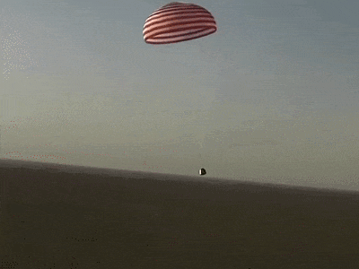 飛船返回艙著陸反推發(fā)動(dòng)機(jī)工作,成功著陸